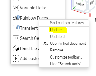 Now, it is important to note that updating the feature in the toolbar does not update the feature in the feature tree. In order to update specific instances of a feature, you will need to go through the update process for each feature in the tree.